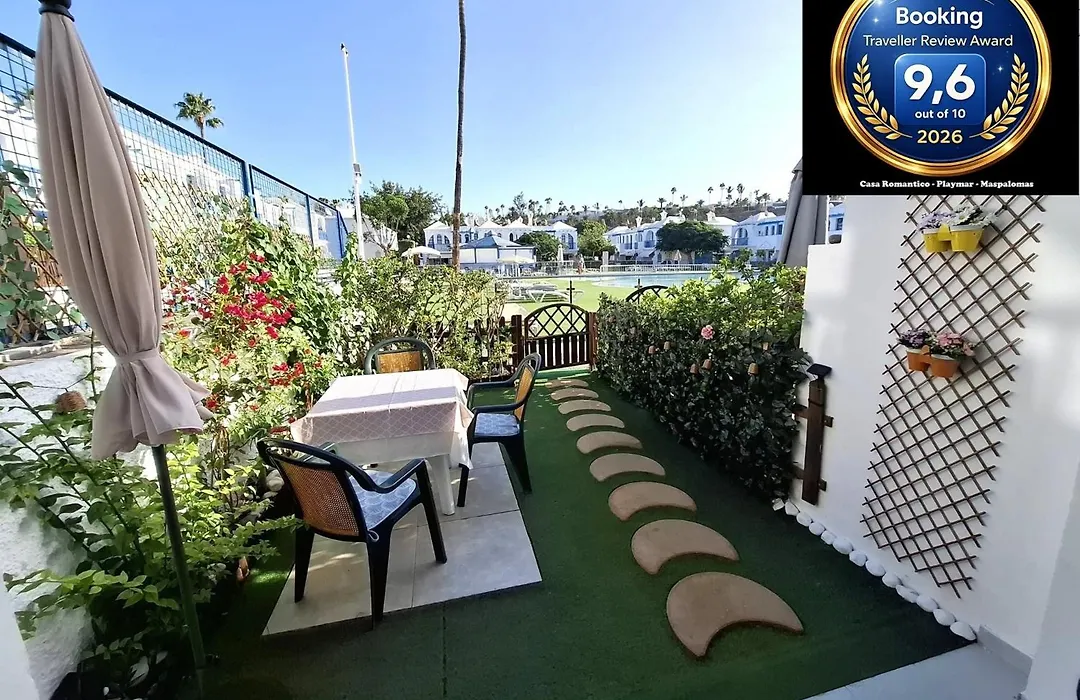Guests staying at Casa Romantico - Playmar - Maspalomas apartment can take advantage of its self-catering amenities, such as an equipped kitchen, and an outdoor dining area. The apartment offers views of the pool from a terrace with a swimming pool.