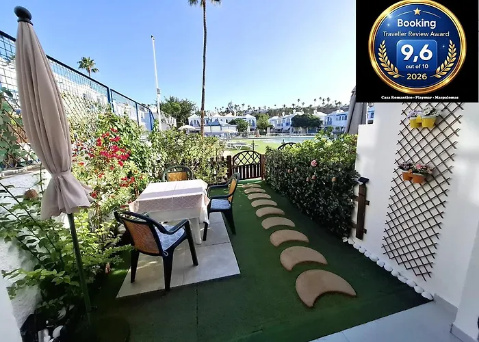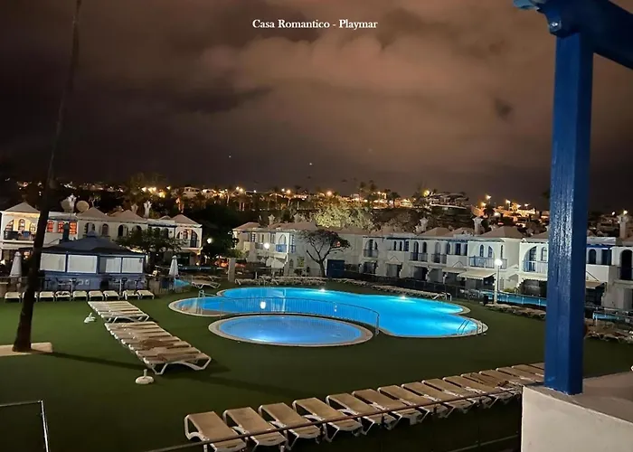 The 1-room Casa Romantico - Playmar - Maspalomas apartment is nestled in the Campo Internacional Maspalomas district of Maspalomas, a mere 1.6 km from the public park "Parque Urbano Del Sur". Situated in the immediate vicinity of the Faro 2 Shopping Centre, the apartment offers a swimming pool for guests' enjoyment.
