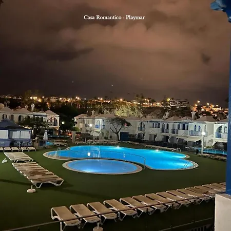 Casa Romantico - Playmar - Maspalomas apartment provides guests with the convenience of self-catering amenities, like an equipped kitchen and an outdoor dining area for their enjoyment. The apartment offers views of the pool from a terrace with a swimming pool.